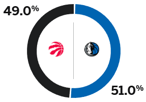 Trong số đó, Mavericks có tỷ lệ thắng là 51% và Raptors có tỷ lệ thắng là 49%.