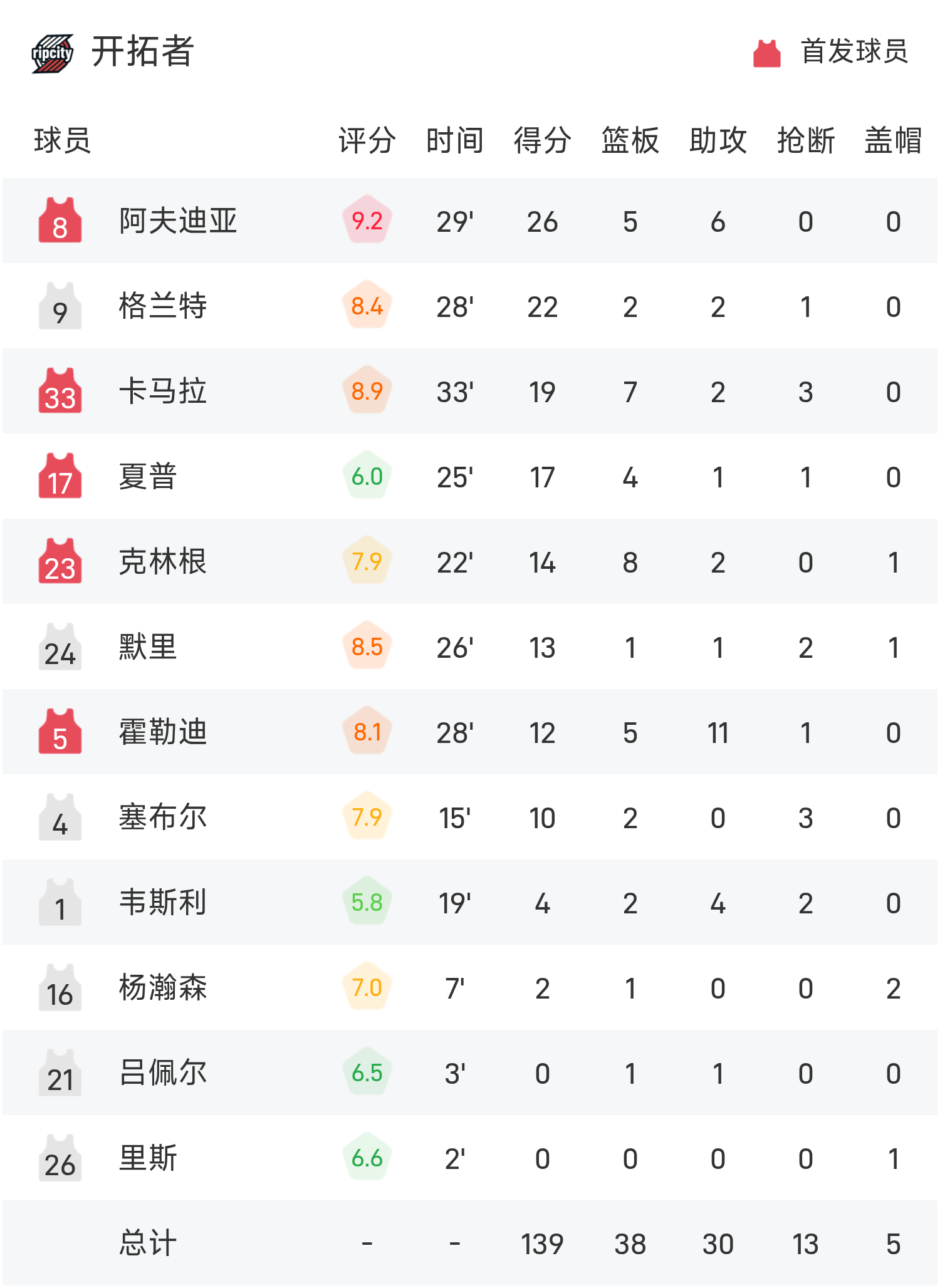 6686 Thể thao Tin tức ngày 25 tháng 10 Trong mùa giải NBA thường lệ 25/26, Trail Blazers đối mặt với Warriors. Kết thúc trận đấu, Trail Blazers đánh bại Warriors với tỷ số 139-119. Avdija ghi 26 điểm, 5 rebound và 6 kiến tạo để dẫn dắt đội đến chiến thắng. Curry ghi được 35 điểm cao nhất trận, 6 rebound và 3 kiến tạo.
