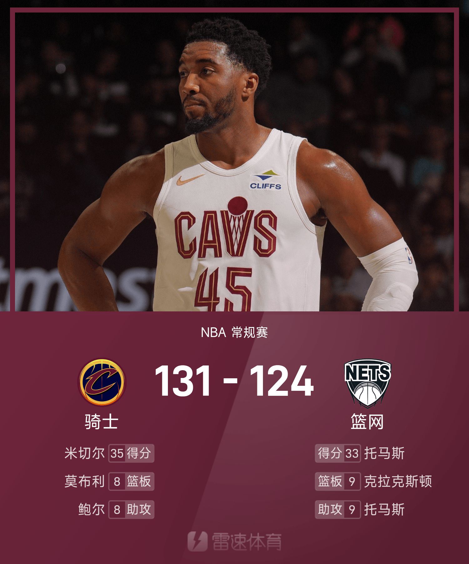 Báo cáo NBA: Mitchell ghi 35 điểm, Cavaliers đánh bại Nets 131-124
