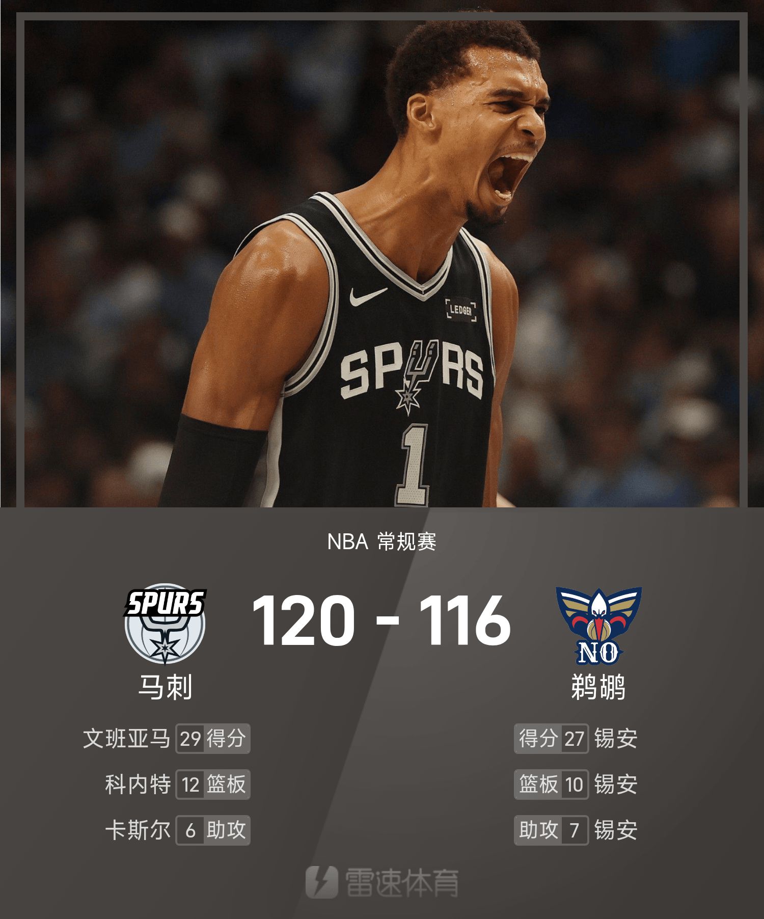 Báo cáo trận đấu NBA: Bunyama có 29 điểm và 9 block, Spurs suýt đánh bại Pelicans 120-116 trong hiệp phụ
