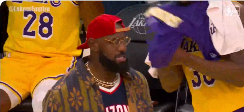 Mặc dù không thể thi đấu vì chấn thương nhưng LeBron vẫn giao tiếp và tích cực tương tác với các đồng đội trên sân.