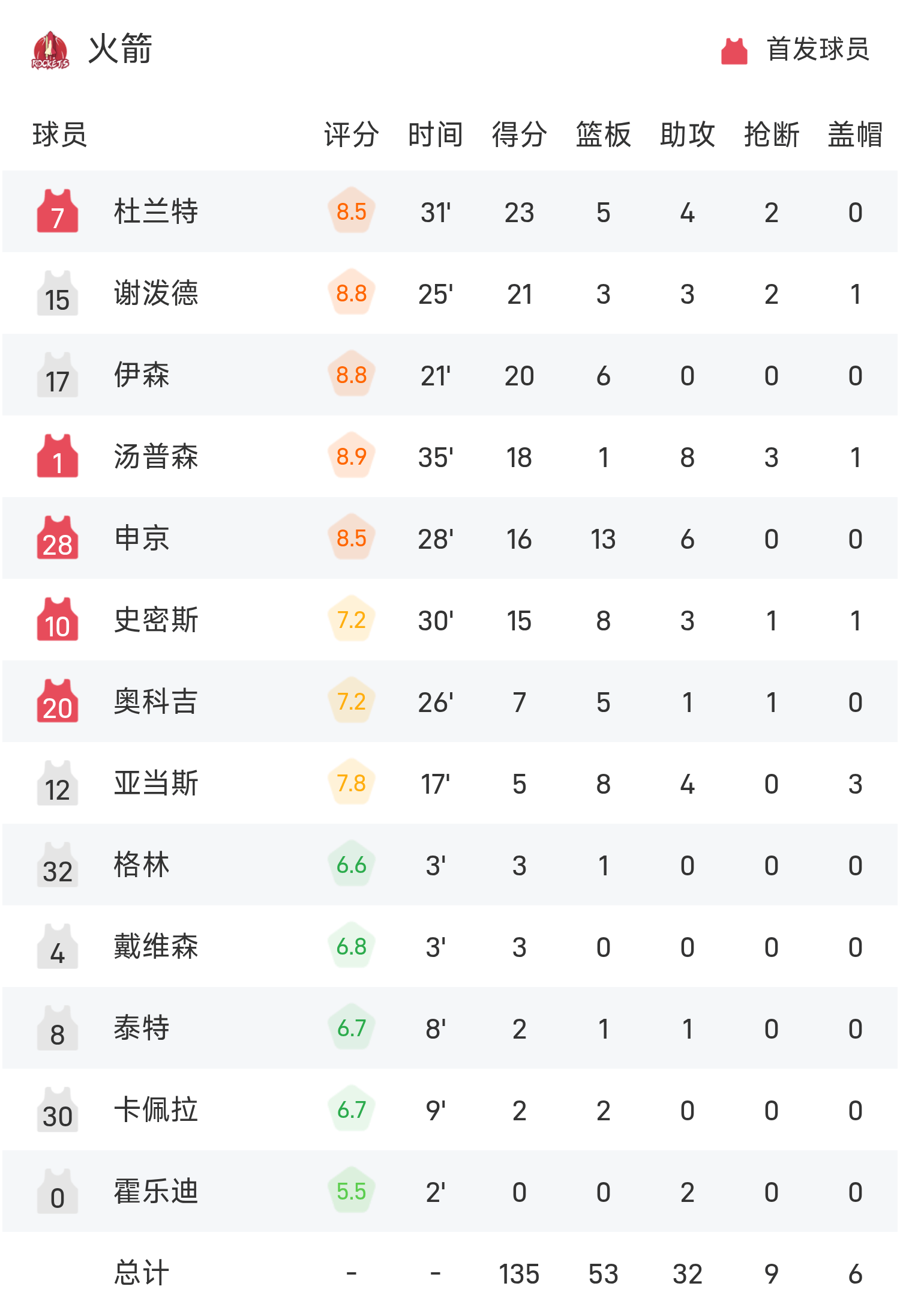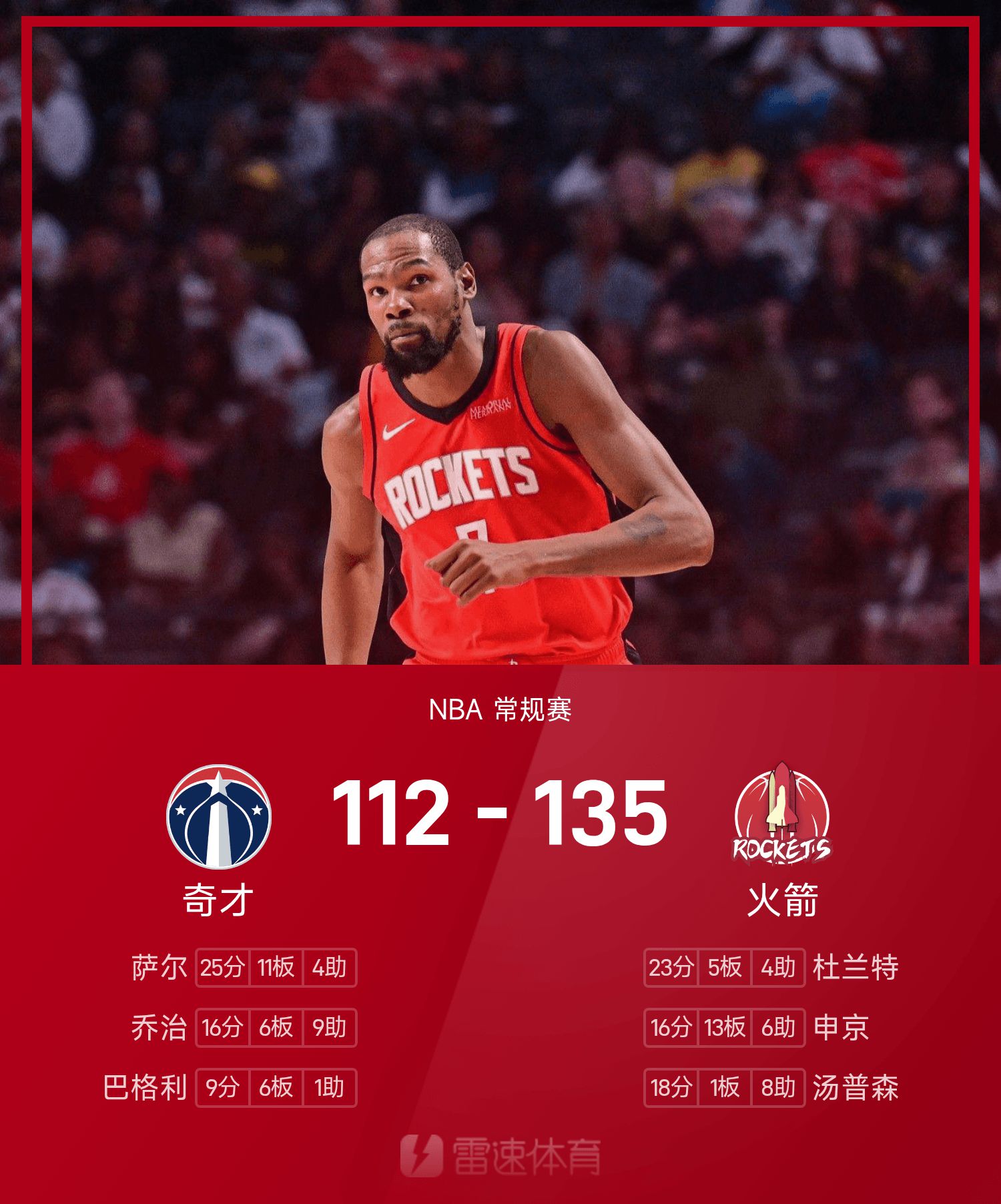 Cuối trận, Rockets đã đánh bại Wizards với tỷ số 135-112.