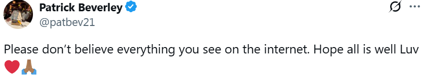 Đáp lại, Beverly đã cập nhật tin tức và viết: "Xin đừng tin vào mọi thứ bạn thấy trên Internet. Tôi hy vọng mọi thứ đều ổn và tôi yêu bạn."
