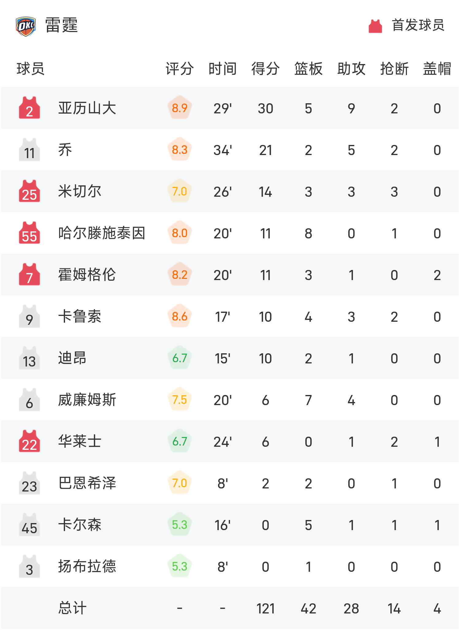 Báo cáo NBA: Alexander có 30 điểm và 9 kiến tạo, Thunder đánh bại Lakers 121-92
