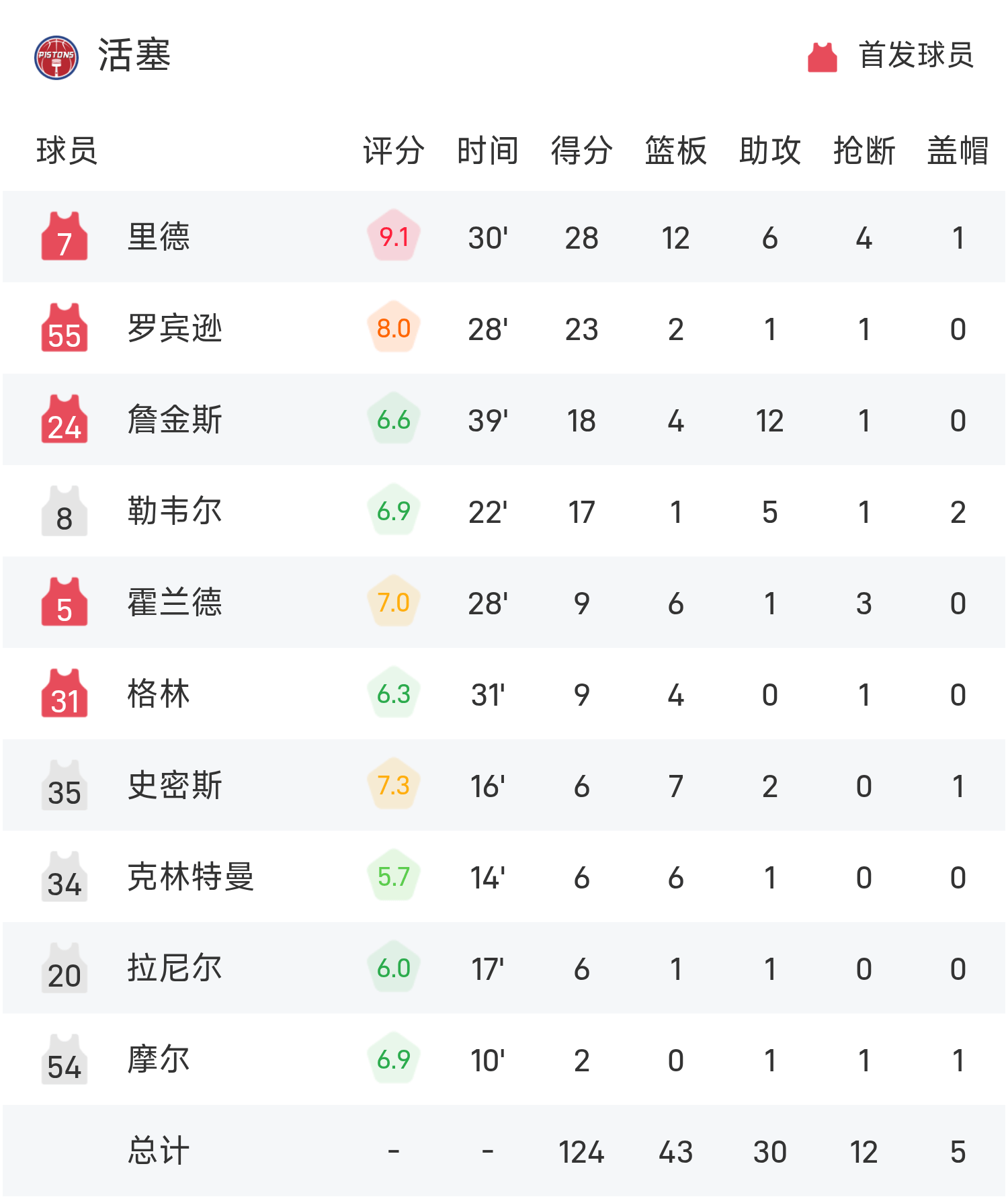Cuối trận, Pistons đánh bại Bulls với tỷ số 124-113.
