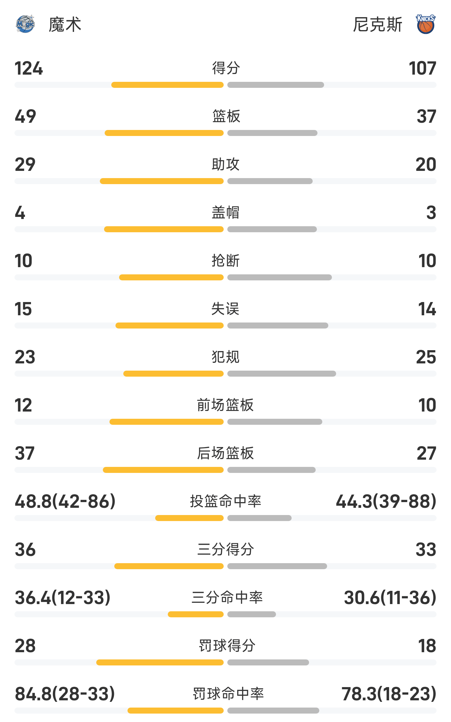 Cuối trận, Knicks thua Magic 107-124.