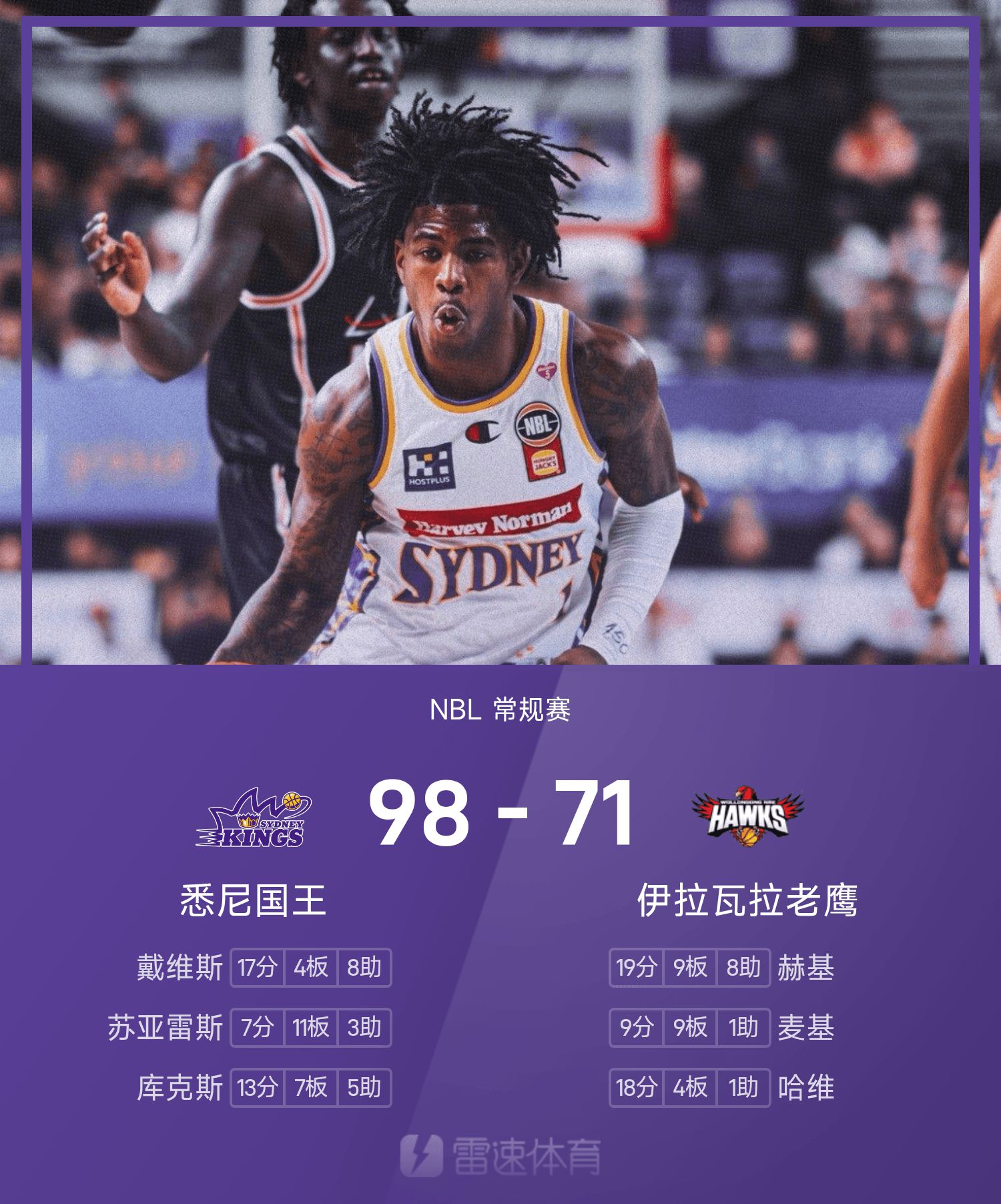 Báo cáo trận đấu NBL: Davis có 17 điểm và 8 kiến tạo, Sydney Kings đánh bại Illawarra Hawks 98-71