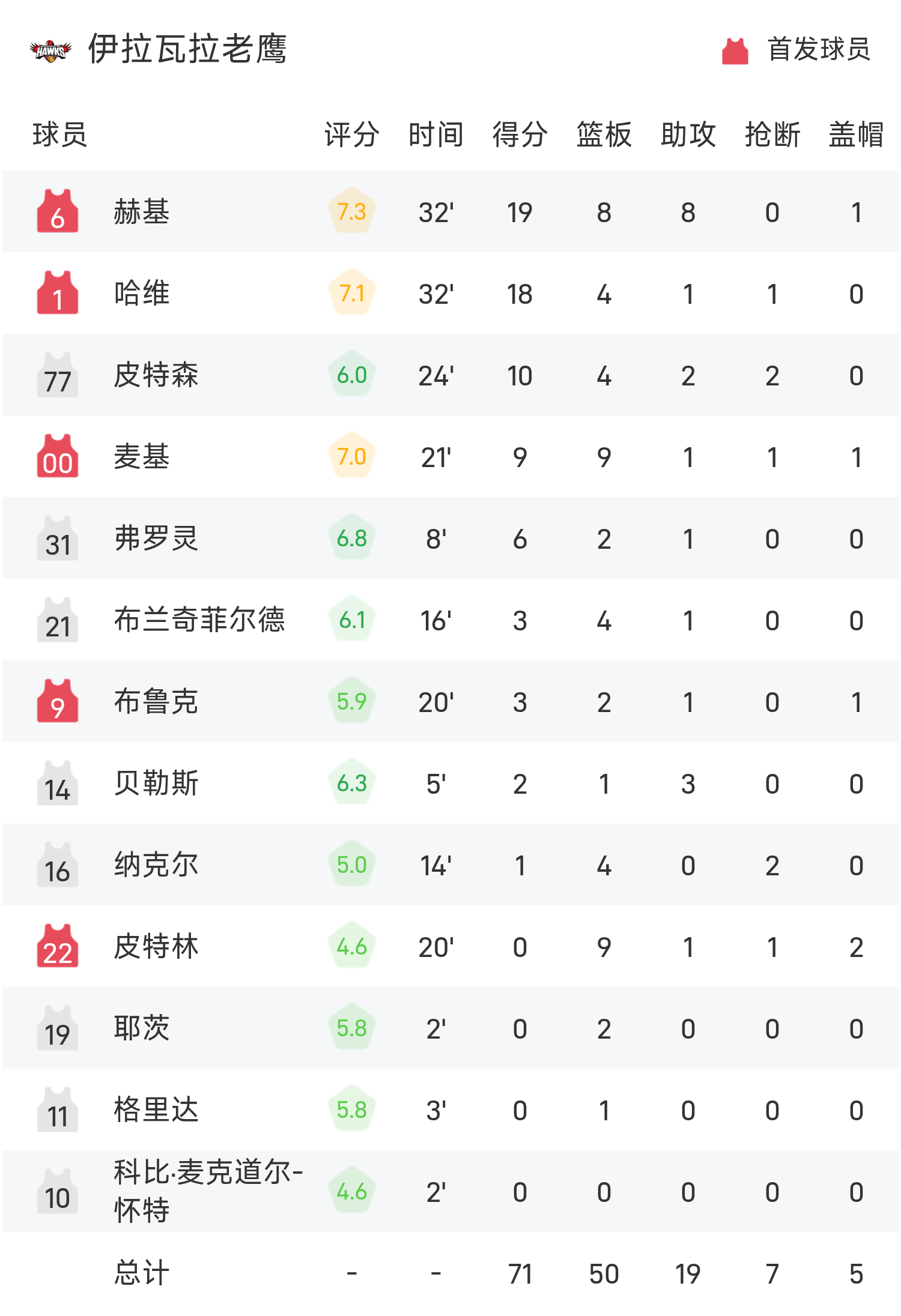 Davis ghi 17 điểm, 4 rebound và 8 kiến tạo để dẫn dắt đội đến chiến thắng. Herkey ghi được 19 điểm cao nhất trận, 8 rebound và 8 kiến tạo.