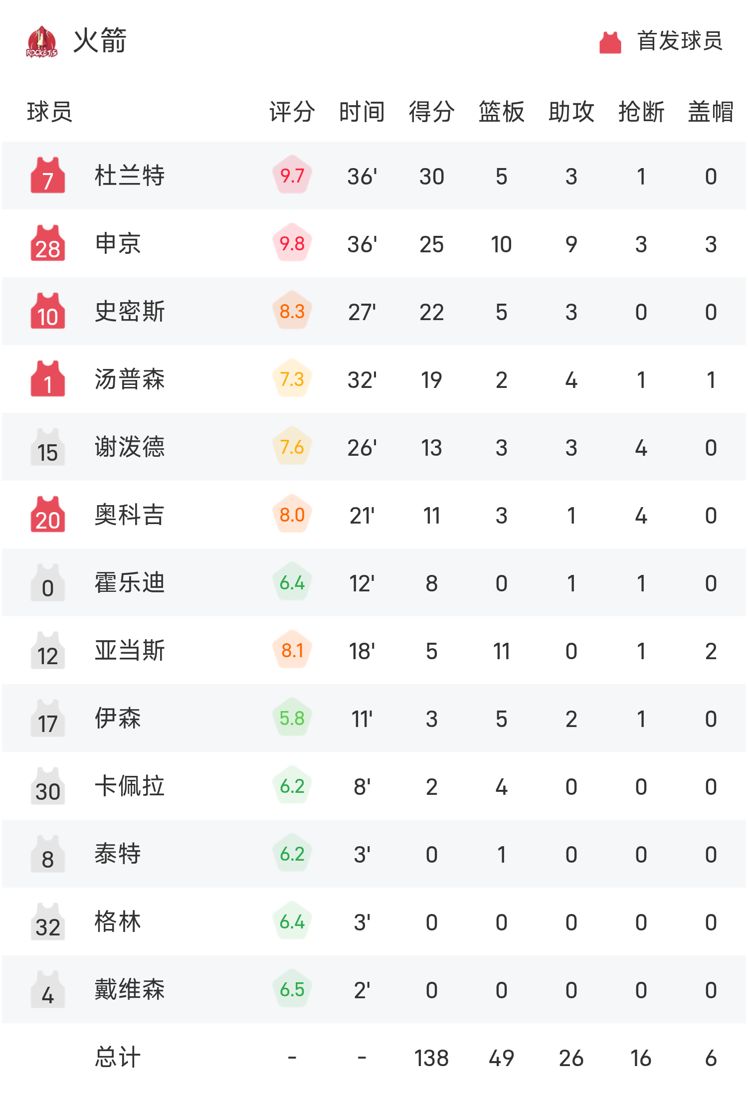 6686 Thể thao Tin tức ngày 15 tháng 11 Trong trận đấu vòng bảng NBA Cup mùa giải thường lệ 25/26, Rockets đối mặt với Trail Blazers. Kết thúc trận đấu, Rockets đánh bại Trail Blazers với tỷ số 140-116. Durant đã ghi được 30 điểm cao nhất trận đấu, 5 rebound và 3 kiến tạo, đưa Rockets đến chiến thắng.
