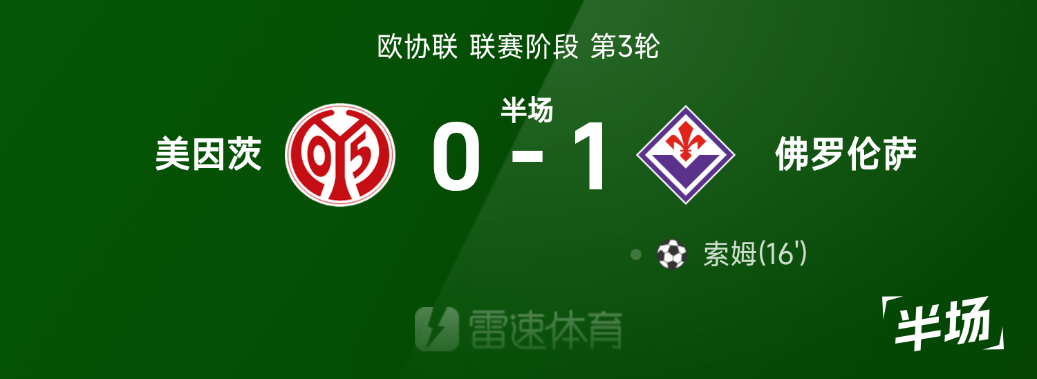 Hiệp 1 UEFA: Som ghi bàn, Mainz 0-1 Fiorentina
