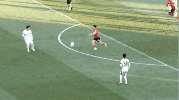 39’ An Yin nhận bóng trước khung thành và lập tức tung cú sút bằng chân phải. Bóng trượt qua khung thành và bay ra khỏi vạch vôi