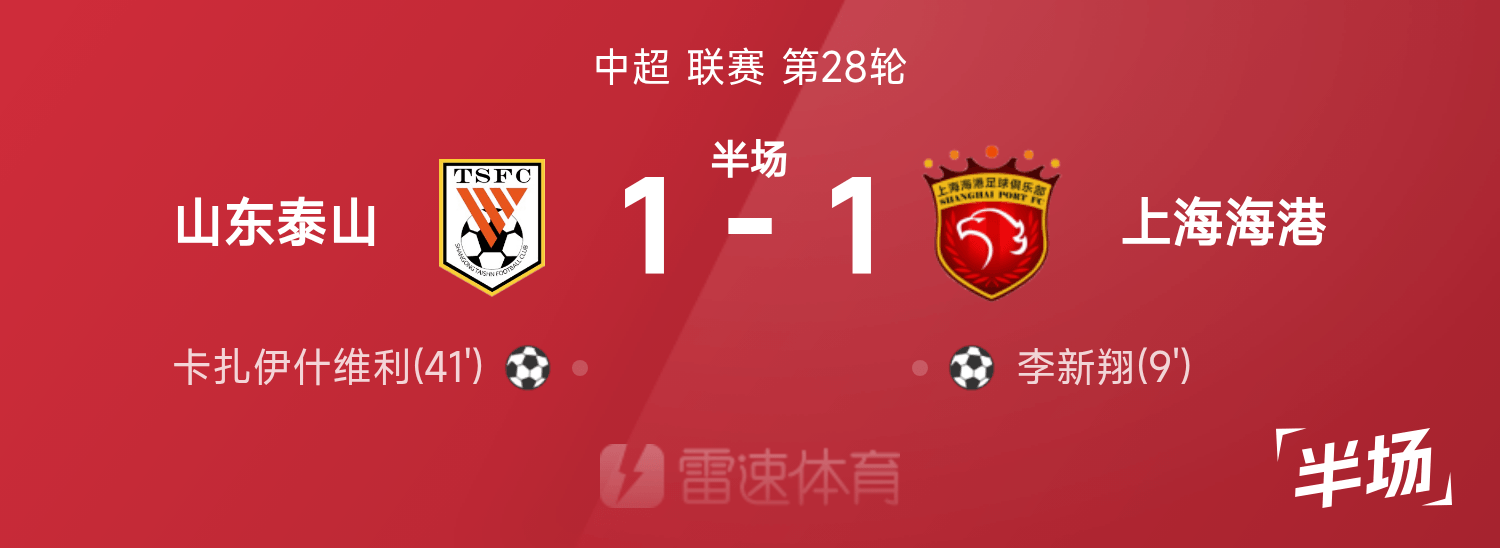 Hiệp 1 Super League Trung Quốc: Li Xinxiang ghi bàn, Kaza gỡ hòa, Taishan tạm dẫn Haigang 1-1