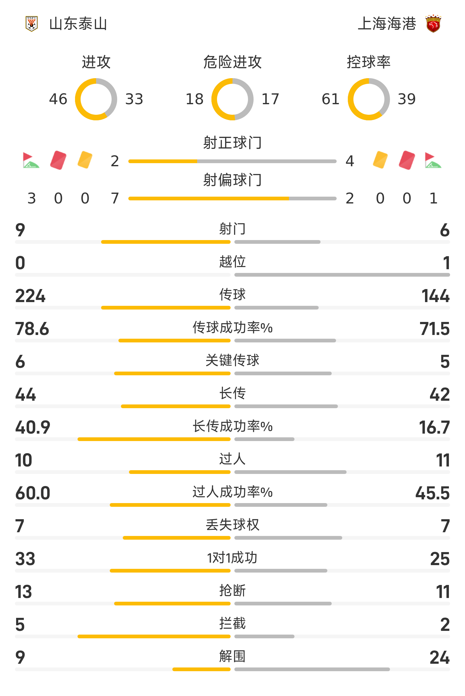 Đội hình xuất phát của Sơn Đông Taishan: 14-Wang Dalei, 5-Zheng Zheng, 33-Gao Zhunyi, 11-Liu Yang, 55-Peng Xiao, 35-Huang Zhengyu, 8-Madruga, 10-Ka Zaishvili, 9-Klesan, 19-Zeka, 38-Li Xiaoheng