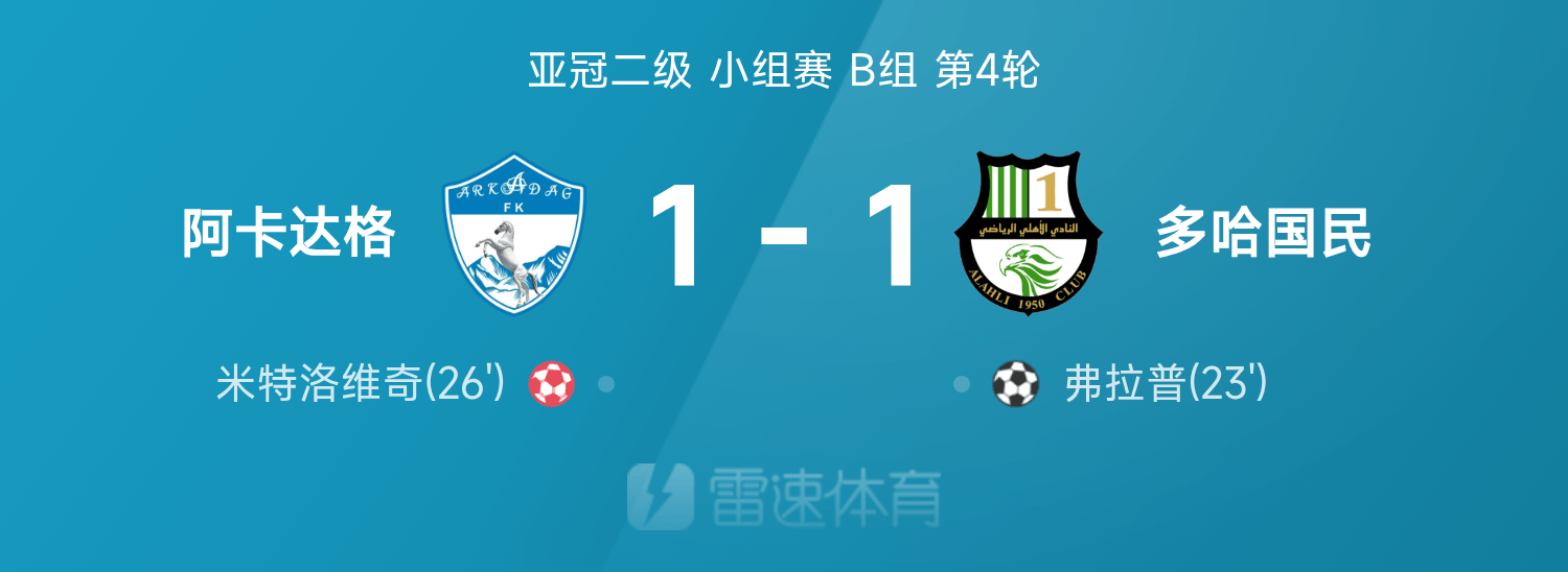 6686 Bản tin thể thao ngày 5/11, lượt trận thứ 4 bảng B vòng 25/26 AFC Champions League trận đấu vòng 2 bảng AFC Champions League, Akadaq vs Doha Nationals. Trong hiệp một, Frapp ghi bàn và Mitrovic đá phản lưới nhà. Sang hiệp hai, không bên nào đạt được thành tựu gì. Chung cuộc, Akadag hòa 1-1 với Doha Nationals.