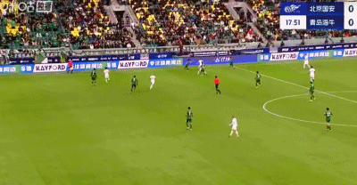 18' Manatee chuyền bóng từ cánh phải tới khung thành, He Yupeng đuổi theo và góp phần cản phá