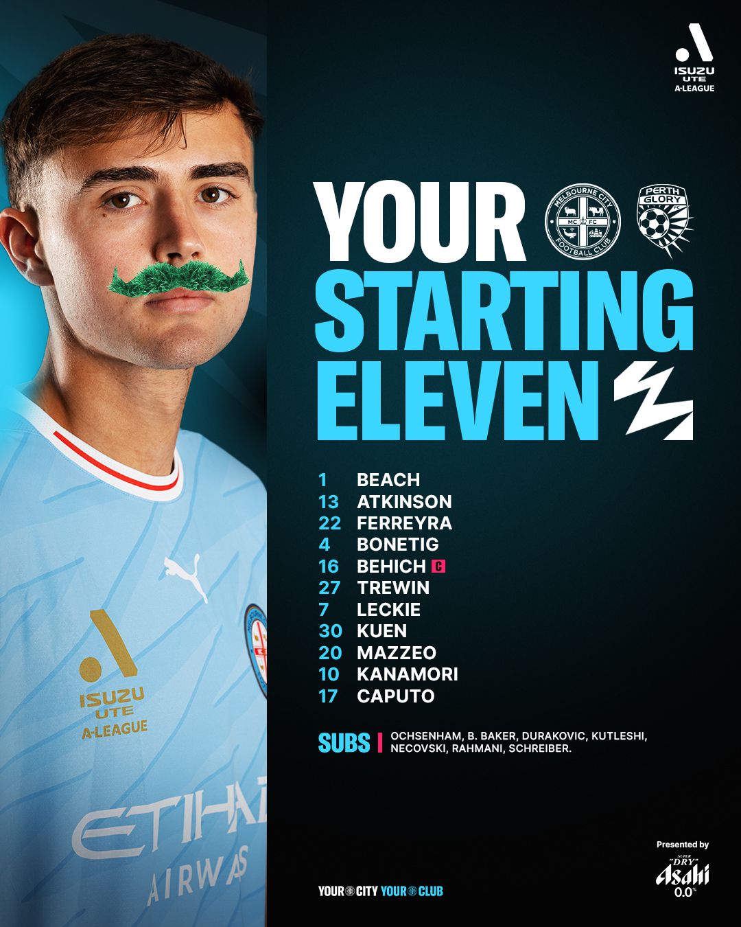 Đội hình xuất phát Melbourne City vs Perth Glory: Leckie PK Taggart, Kucharski, Beach có tên trong danh sách