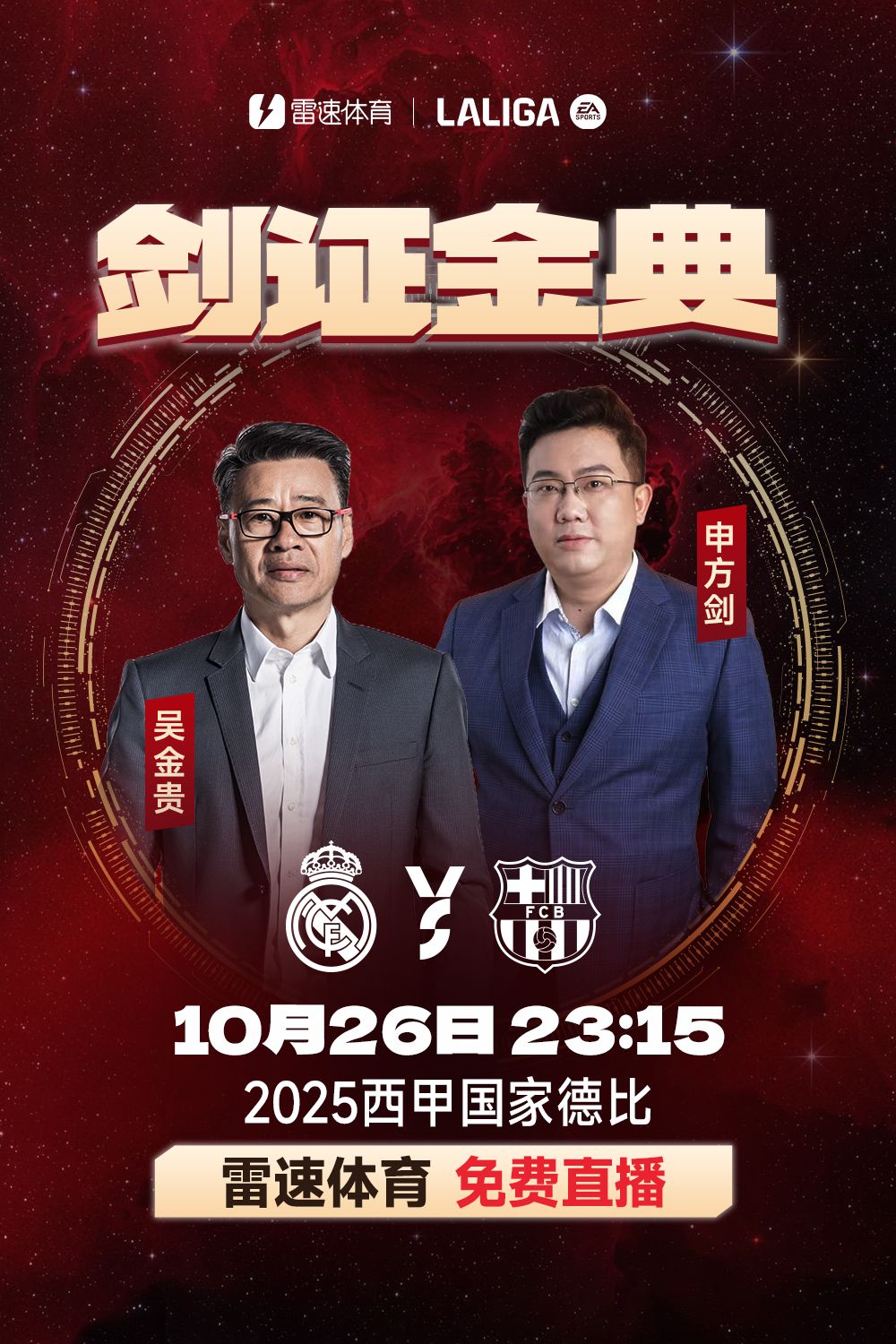 Lúc 23h15 ngày 26/10, giờ Bắc Kinh, ở vòng 10 La Liga, Real Madrid sẽ gặp Barcelona trên sân nhà. Đây sẽ là trận derby quốc gia Tây Ban Nha đầu tiên trong mùa giải này. 6686 Sports sẽ phát sóng trực tiếp miễn phí trận đấu tập trung này và vinh dự được mời hai vị khách đặc biệt bình luận trận đấu này là huấn luyện viên nổi tiếng Wu Jingui và bình luận viên nổi tiếng Shen Fangjian.