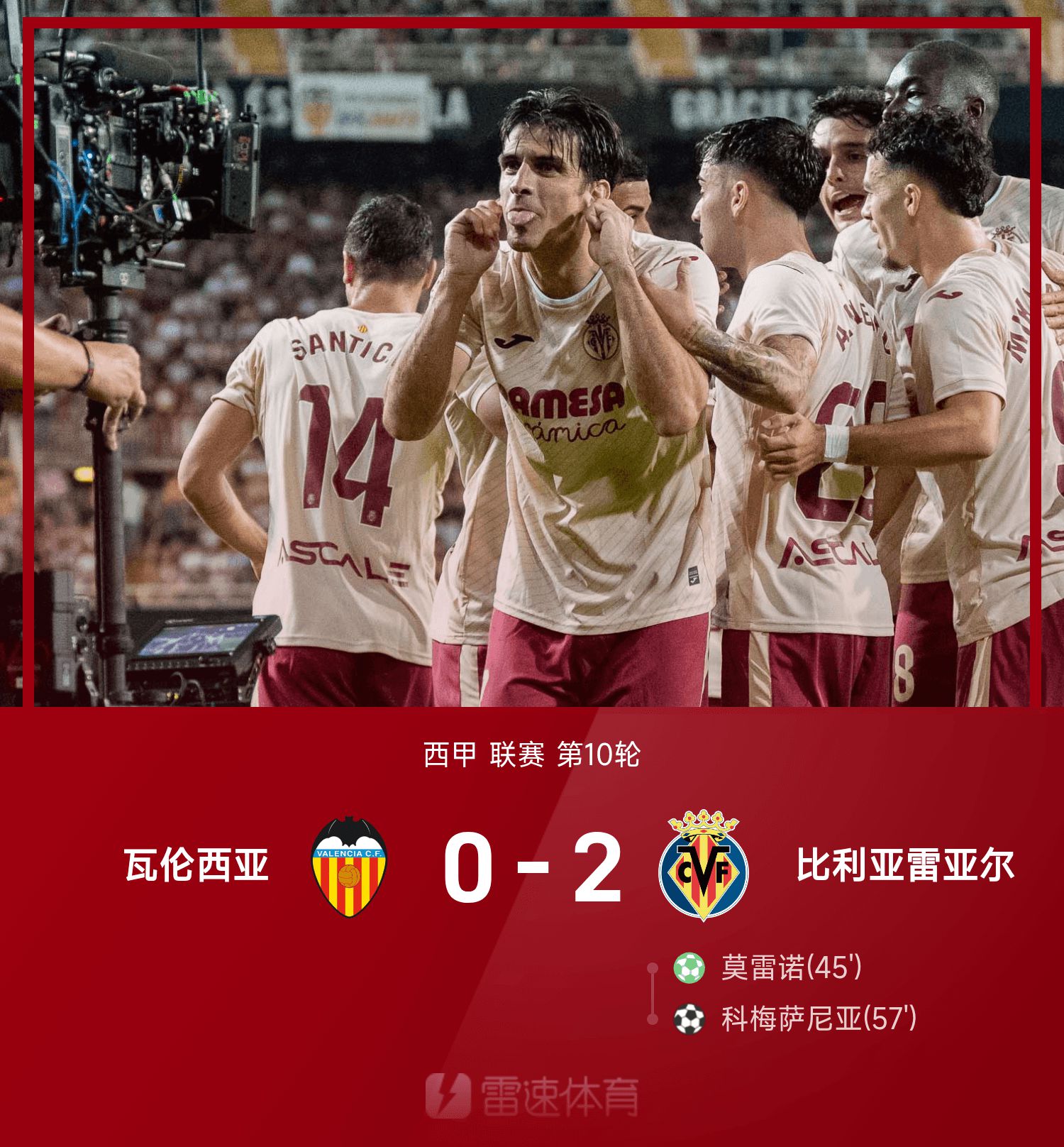 6686 Bản tin thể thao ngày 26/10 Ở vòng 10 mùa giải La Liga 25/26, Villarreal đã đánh bại Valencia 2-0. Phút 45, Moreno ghi bàn và tự mình thực hiện quả phạt đền, ghi cột mốc trận thứ 300; Phút 57, Comesagna thực hiện cú sút ấn định chiến thắng.