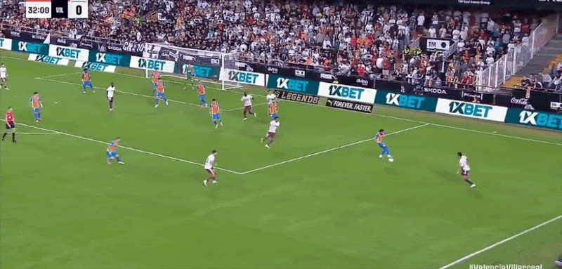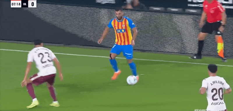 Đội hình xuất phát của Valencia: 25-Aguirre Zabala, 14-Gaya (61’21-Vazquez), 12-Correa (83’19-Lava), 3-Copet, 5-Tarraga, 18-Pepelu (83’22-Santa Maria), 7-Danjuma, 1 1-Rioja, 8-Guerra (61'10-Almeida), 15-Beltran (46'9-Duro), 16-López