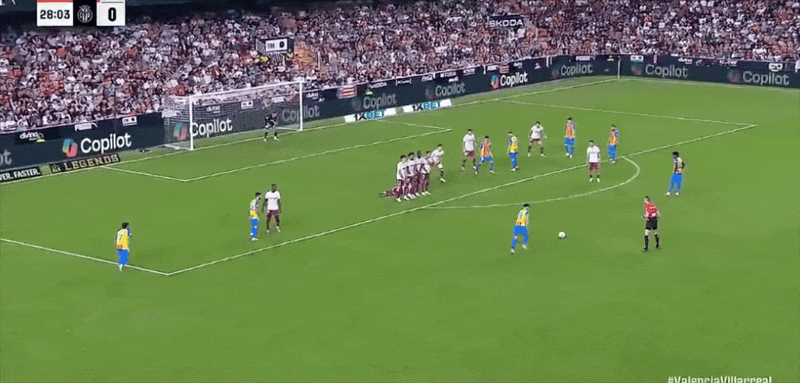 29' Pepelu đã thực hiện một quả đá phạt trực tiếp trước khu vực 3 giây, bóng bay về phía khán đài