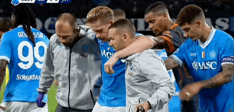 6686 Thể thao, ngày 26 tháng 10. Dù Naples đã đánh bại Inter Milan 3-1 ở vòng đấu Serie A này và có được chiến thắng quan trọng nhưng làn sóng chấn thương của đội bóng vẫn tiếp tục. Cầu thủ mới nhất ngã xuống là tiền vệ người Bỉ De Bruyne. Phút 33 trận Napoli gặp Inter Milan, anh buộc phải rời sân trong nước mắt vì chấn thương gân khoeo ở chân phải. Ngay trước đó, anh vừa đích thân thực hiện quả phạt đền từ cự ly 12m giúp đội nhà vượt lên dẫn trước.