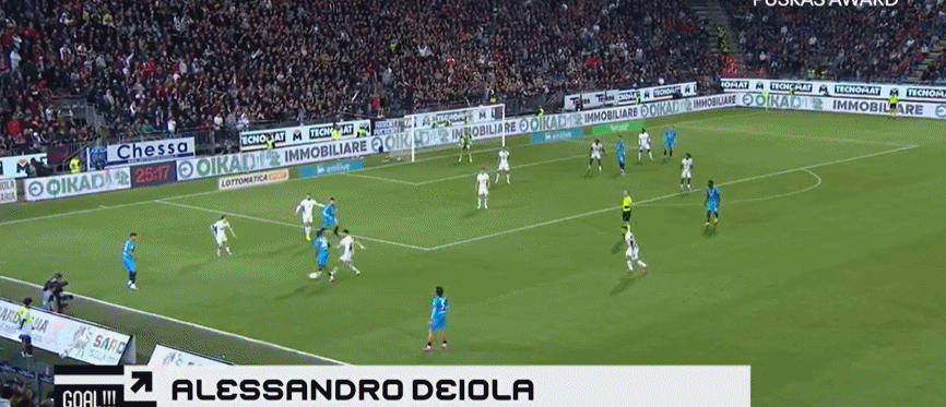 Cagliari vs Venezia: Cú sút vào trong của Diola