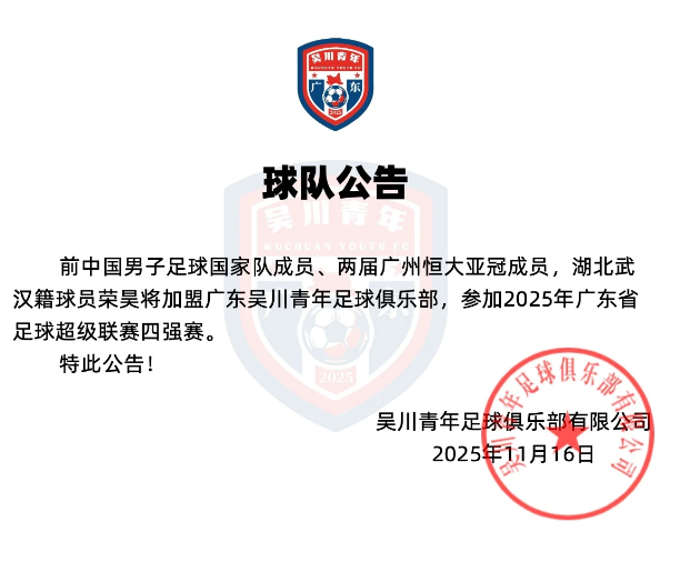 Rong Hao, cựu thành viên của Đội tuyển bóng đá nam quốc gia Trung Quốc và là thành viên hai lần của Giải vô địch AFC Champions League Quảng Châu Evergrande, một cầu thủ đến từ Vũ Hán, Hồ Bắc, sẽ gia nhập Câu lạc bộ bóng đá trẻ Quảng Đông Wuchuan và tham gia vào bán kết Siêu giải bóng đá tỉnh Quảng Đông 2025.