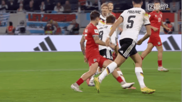 8' Wirtz nhận bóng trong vòng 3 giây rồi bất ngờ tung mũi tên lạnh lùng vào góc xa, nhưng bóng đi quá đúng và bị thủ môn cản phá