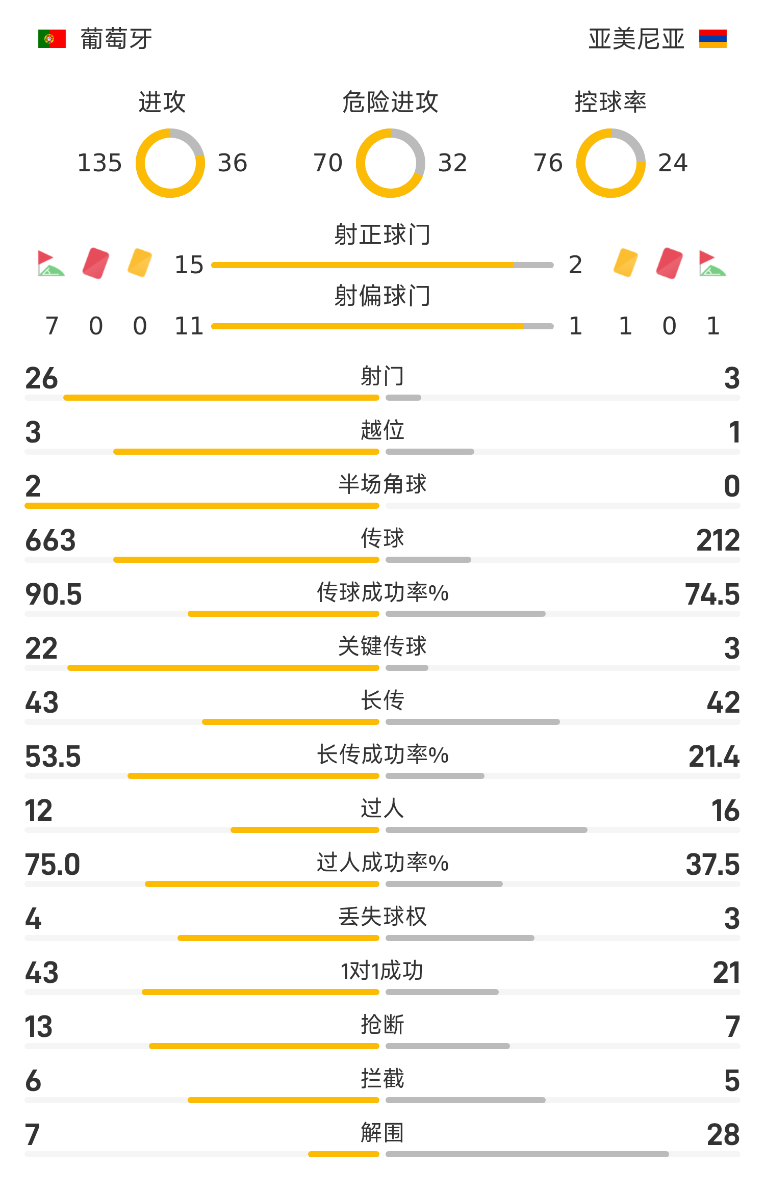 6686 Sports đưa tin ngày 16/11 rằng ở lượt trận thứ 10 bảng F Vòng loại khu vực châu Âu thế giới 2026, đội chủ nhà Bồ Đào Nha đã đánh bại Armenia với tỷ số 9-1. Vega ghi bàn cho Bồ Đào Nha, rồi Spertson gỡ hòa cho Armenia; Ở trận tiếp theo, đội Bồ Đào Nha giống như một vị thần giúp đỡ, Neves và B Fee lần lượt hoàn thành hat-trick, Ramos thực hiện đường chuyền và cú sút, còn Conceição thêm kem vào bánh cho đội. Bồ Đào Nha đứng nhất bảng F với 13 điểm với 4 trận thắng, 1 trận hòa và 1 trận thua, đồng thời giành quyền trực tiếp tham dự World Cup 2026 của Mỹ, Canada và Mexico.
