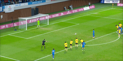 36’ Zhang Zhixiong ngã xuống đất trong khu vực ba giây và trọng tài không thổi còi quả phạt đền 12 yard