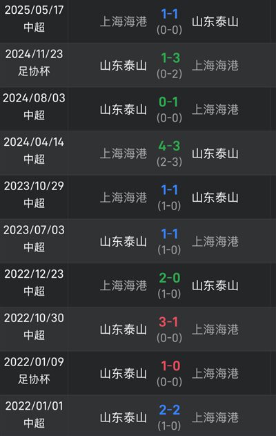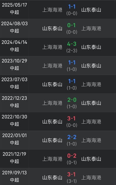 Đánh giá từ dữ liệu trận đấu gần đây giữa hai bên, trong 10 trận vừa qua ở nhiều giải đấu khác nhau, Shandong Taishan có 2 trận thắng, 4 trận hòa và 4 trận thua. Kể từ khi đội nhà đánh bại Haigang 3-1 vào ngày 30 tháng 10 năm 2022, Taishan đã không thể đánh bại đối thủ trong 1093 ngày.