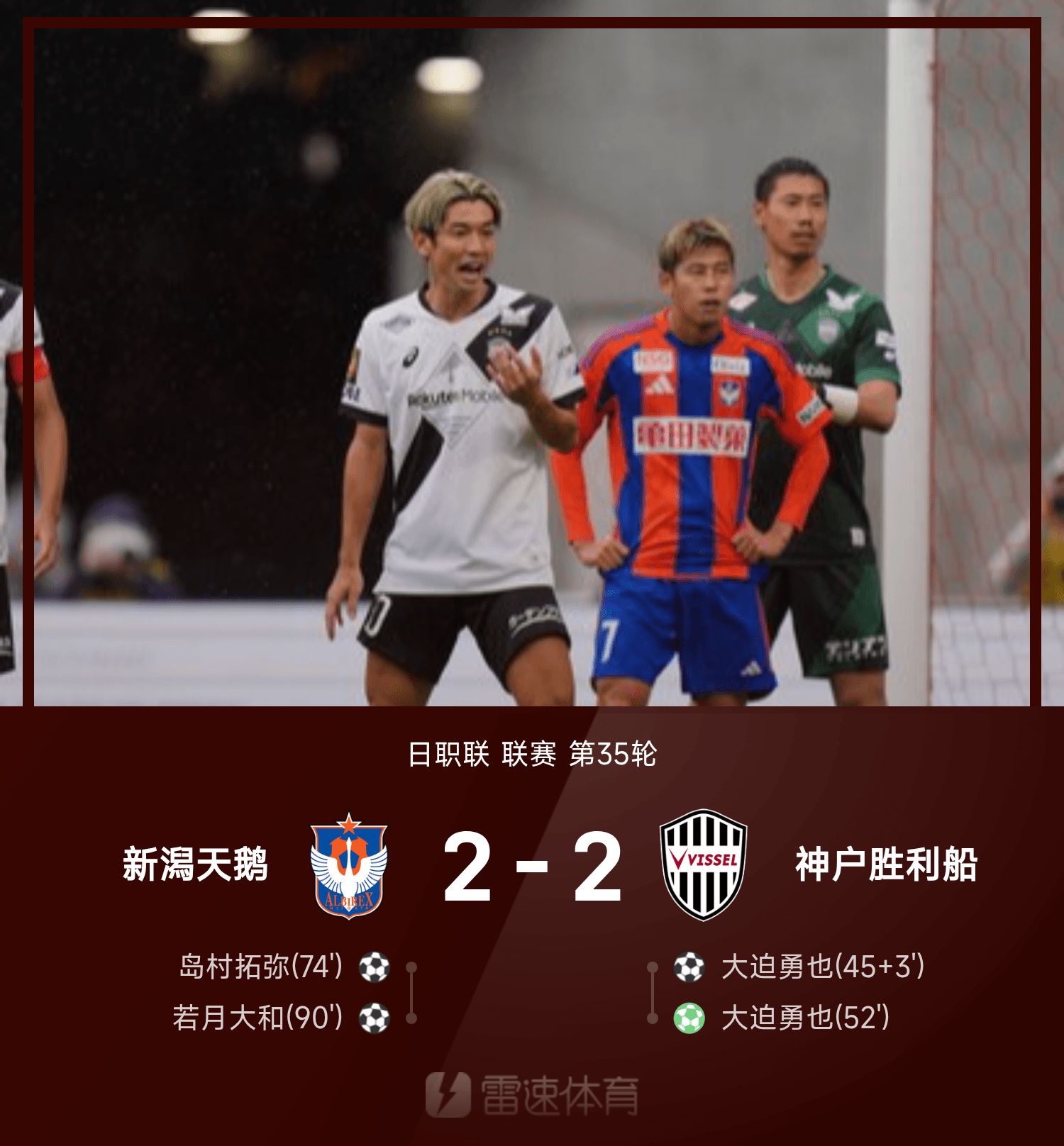 Tường thuật trận đấu chuyên nghiệp Nhật Bản: Yamato Wakazuki cứu tinh đội dự bị, Niigata hòa Kobe 2-2